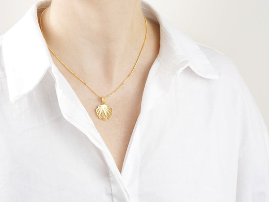 Conjunto Brincos e Colar Concha, Filigrana Portuguesa, Prata de Lei 925 Dourada