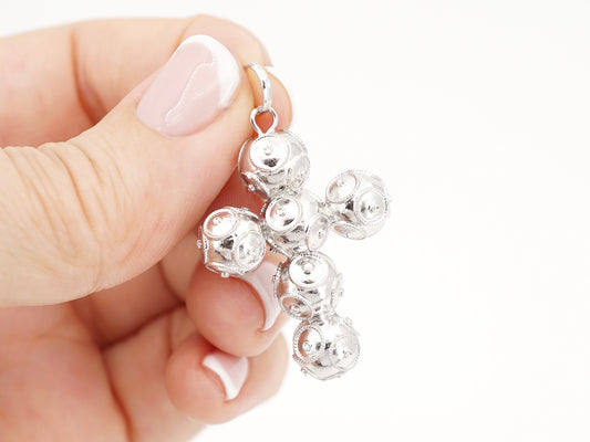 Medalha Cruz Pequena de Contas de Viana 6mm, Filigrana Portuguesa, Prata de Lei 925