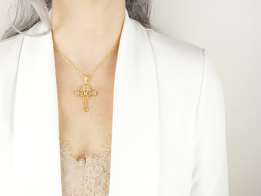 Colar com Cruz, Filigrana Portuguesa, Prata de Lei 925 Dourada