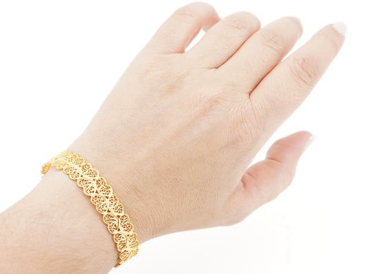 Pulseira Escrava Corações, Filigrana Portuguesa, Prata Dourada 925