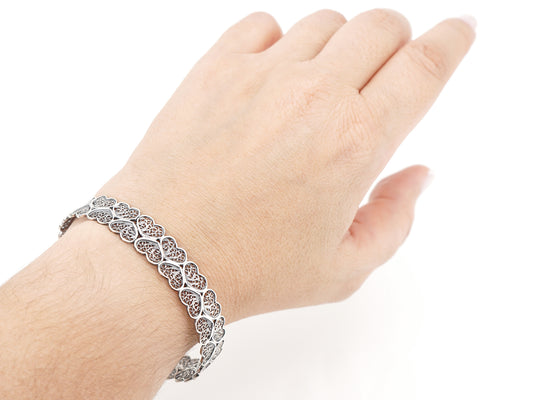 Pulseira Escrava Corações, Filigrana Portuguesa, Prata de Lei 925