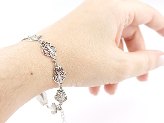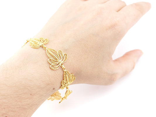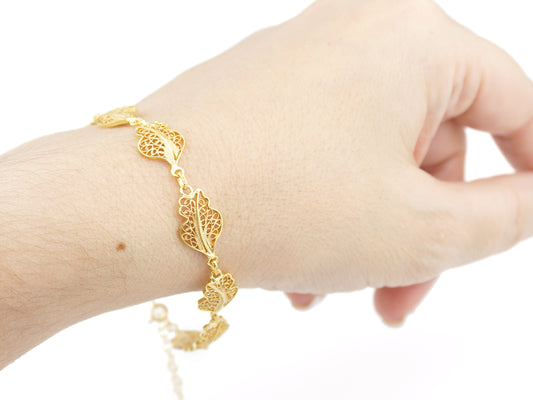 Pulseira Folhas, Filigrana Portuguesa, Prata de Lei 925 Dourada