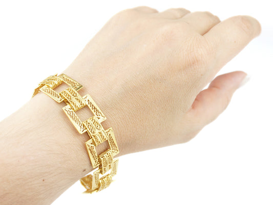 Pulseira Quadrados, Filigrana Portuguesa, Prata de Lei 925 Dourada