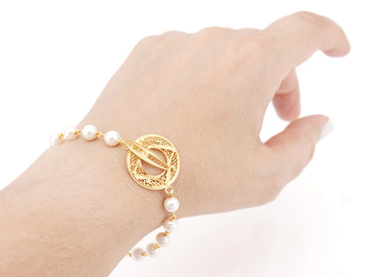 Pulseira Pérolas e Filigrana Portuguesa, Prata de Lei 925 Dourada
