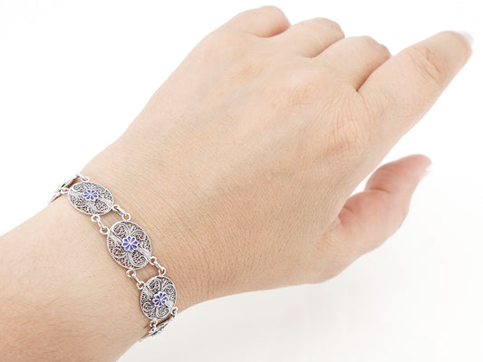 Pulseira de Ovais com Esmalte, Filigrana Portuguesa, Prata de Lei 925