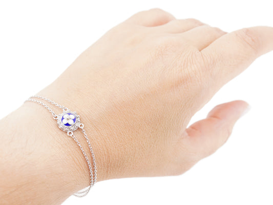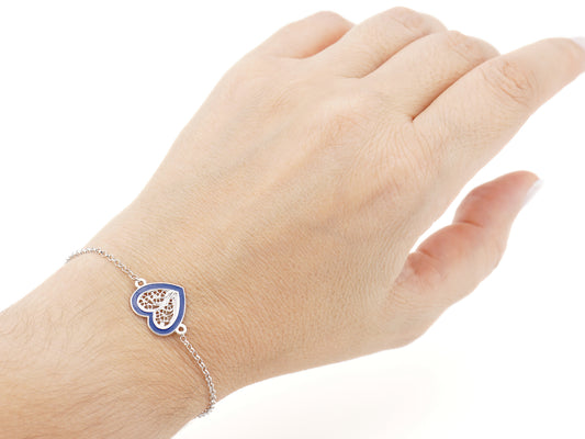Pulseira Coração Médio Esmalte Azul, Filigrana Portuguesa, Prata de Lei 925
