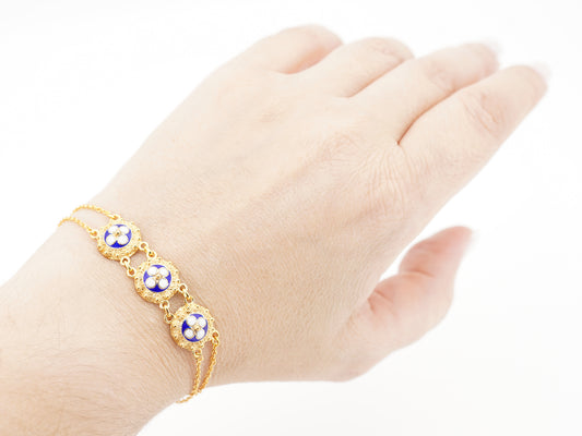 Pulseira de Ovais com Esmalte, Filigrana Portuguesa, Prata de Lei 925 Dourada