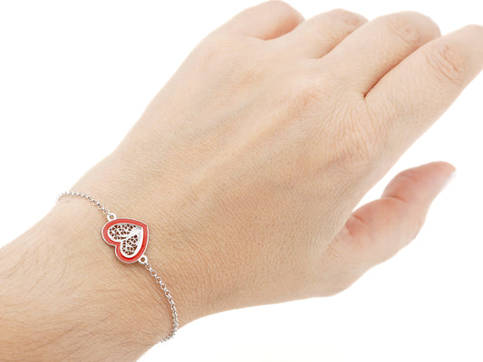 Pulseira Coração Médio Esmalte Vermelho, Filigrana Portuguesa, Prata de Lei 925