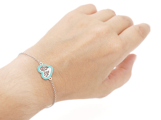 Pulseira Coração Médio Esmalte Turquesa, Filigrana Portuguesa, Prata de Lei 925