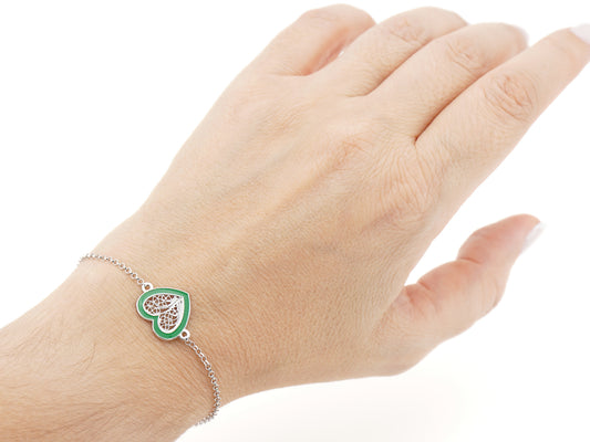Pulseira Coração Médio Esmalte Verde, Filigrana Portuguesa, Prata de Lei 925