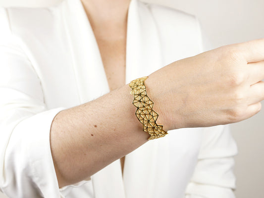 Pulseira Escrava Geométrica Assimétrica, Filigrana Portuguesa, Prata de Lei 925 Dourada