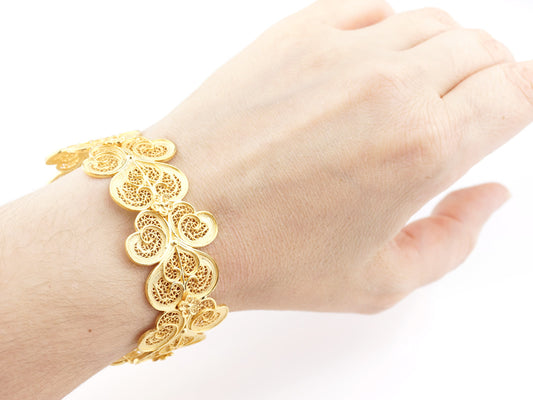 Pulseira Caramujos Clássicos, Filigrana Portuguesa, Prata de Lei 925 Dourada