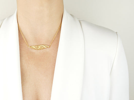 Necklace with Elongated Asymmetric Element, Portuguese Filigree, Golden 925 Sterling Silver