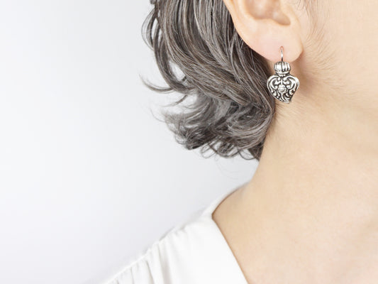 Baroque Small Viana Heart Earrings, 925 Sterling Silver
