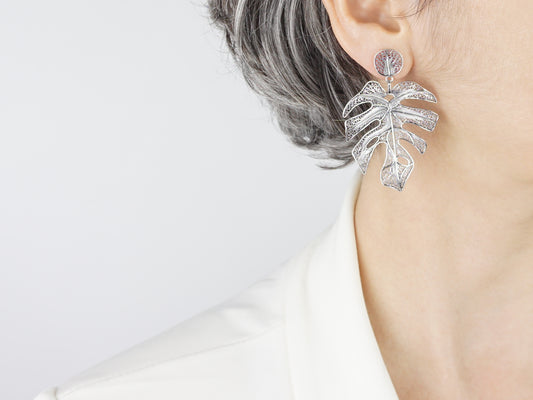 Extra Large Leaf Earrings, Portuguese Filigree, 925 Sterling Silver