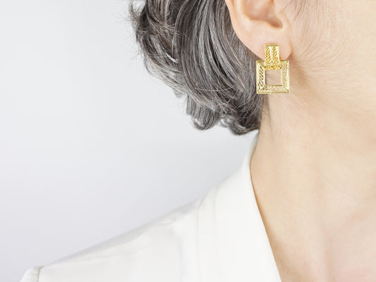 Squared Earrings, Portuguese Filigree, Golden 925 Sterling Silver