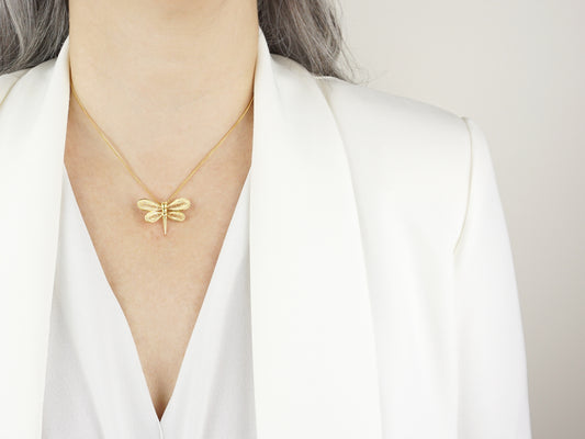 Necklace with Small Dragonfly, Portuguese Filigree, Golden 925 Sterling Silver