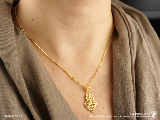 Necklace with Small Clover, Portuguese Filigree, Golden 925 Sterling Silver