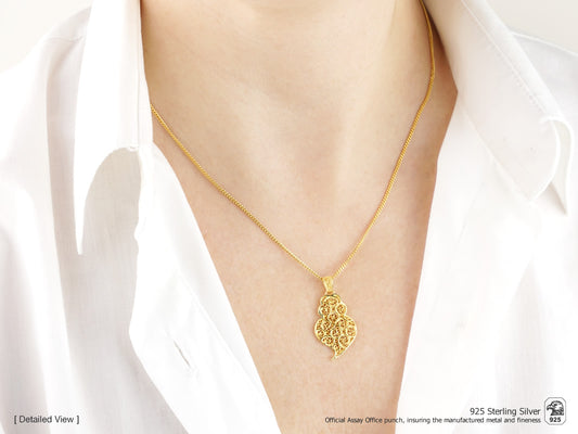 Our Lady of Fátima Necklace, Portuguese Filigree, Golden 925 Sterling Silver