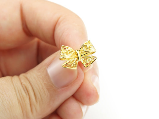 Bow SET, Small Earrings and Bracelet, Portuguese Filigree, Golden 925 Sterling Silver