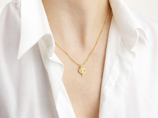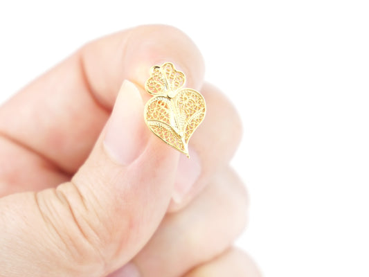 Mini Viana Heart SET Earrings and Necklace, Portuguese Filigree, Golden 925 Sterling Silver