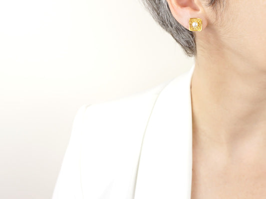 Small Square with Pearls Set, Earrings and Necklace, Portuguese Filigree, Golden 925 Sterling Silver