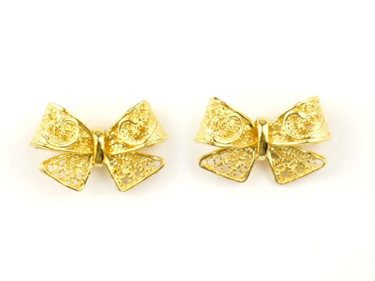 Bow SET, Small Earrings + Adjustable Ring, Portuguese Filigree, Golden 925 Sterling Silver