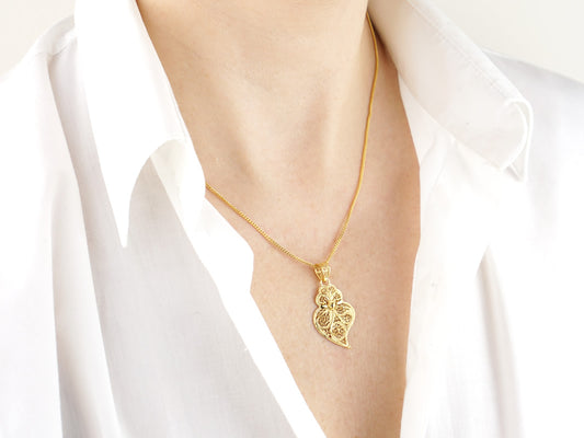 Small Viana Heart SET, Earrings and Necklace, Portuguese Filigree, Golden 925 Sterling Silver