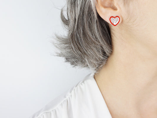 Hearts SET Earrings and Bracelet with Red Enamel, Portuguese Filigree, 925 Sterling Silver