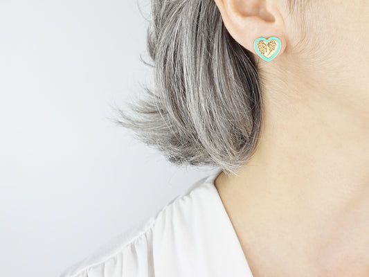 Hearts SET Earrings and Bracelet with Turquoise Enamel, Portuguese Filigree, Golden 925 Sterling Silver
