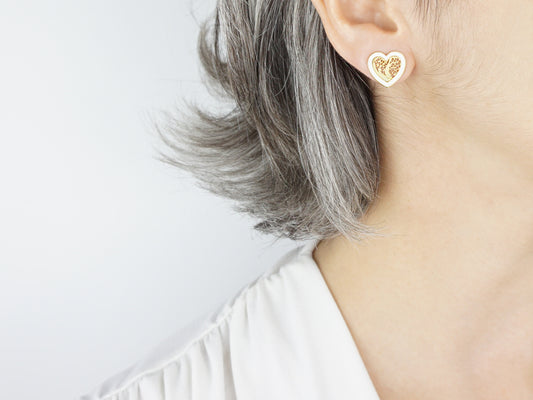 Hearts SET Earrings and Bracelet with White Enamel, Portuguese Filigree, Golden 925 Sterling Silver