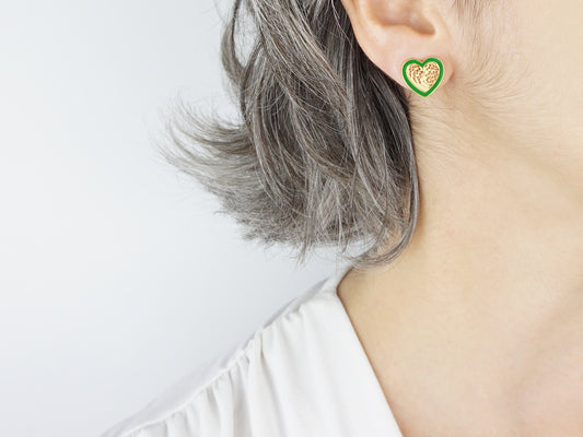 Hearts SET Earrings and Bracelet with Green Enamel, Portuguese Filigree, Golden 925 Sterling Silver