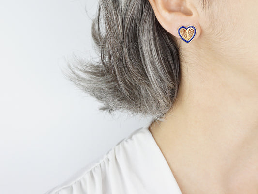 Hearts SET Earrings and Bracelet with Blue Enamel, Portuguese Filigree, Golden 925 Sterling Silver