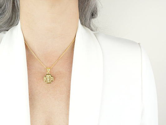 Necklace with Small Squared Cross, Portuguese Filigree, Golden 925 Sterling Silver