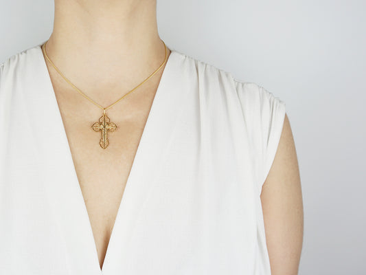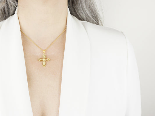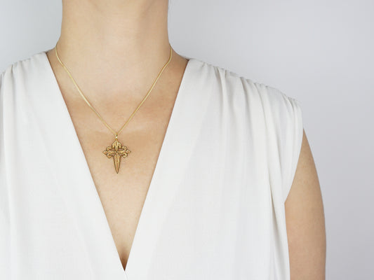 Edgy Cross Pendant, Portuguese Filigree, Golden 925 Sterling Silver