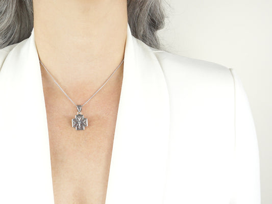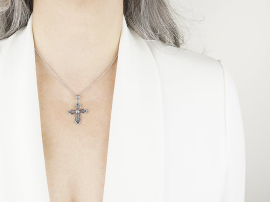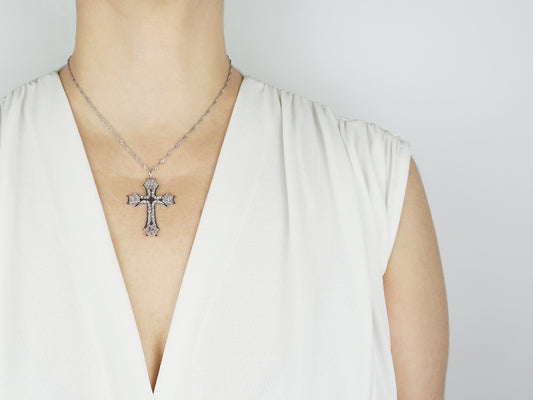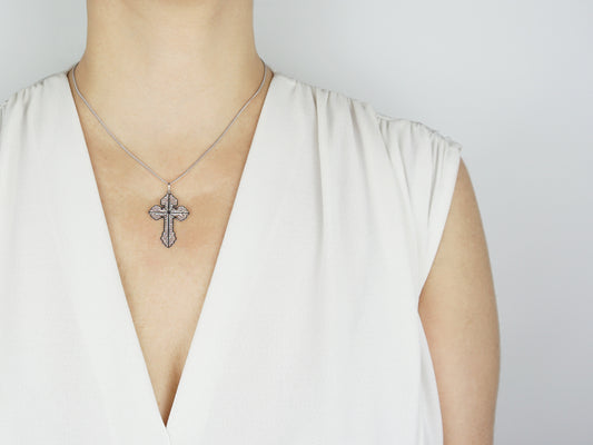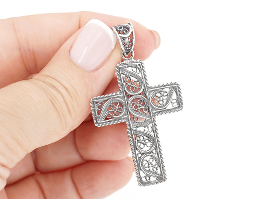 Edgy Cross Pendant, Portuguese Filigree, 925 Sterling Silver