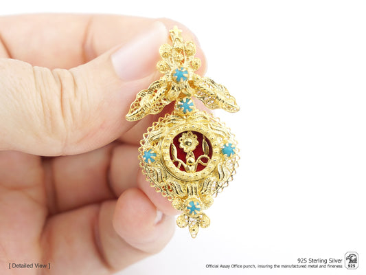 Small Reliquary / Custody Pendant, Portuguese Filigree, Golden 925 Sterling Silver