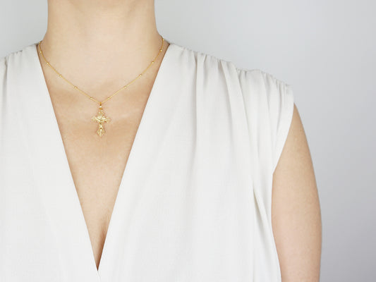Necklace with Small Viana Beads Cross, Portuguese Filigree, Golden 925 Sterling Silver
