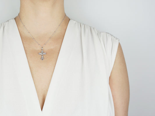 Necklace with Small Viana Beads Cross, Portuguese Filigree, 925 Sterling Silver