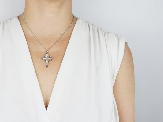 Necklace with Pointy Cross, Portuguese Filigree, 925 Sterling Silver