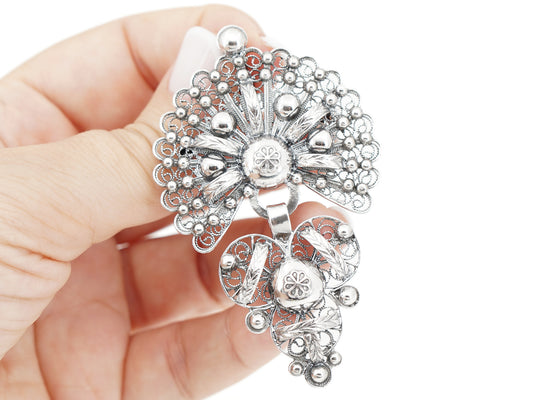 Extra Large Inverted Laça / Galician Pendant and Brooch, Portuguese Filigree, 925 Sterling Silver