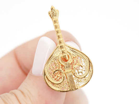 Pin Portuguese Fado Guitar, Portuguese Filigree, Golden 925 Sterling Silver