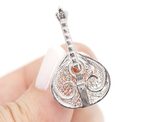 Pin Portuguese Fado Guitar, Portuguese Filigree, 925 Sterling Silver