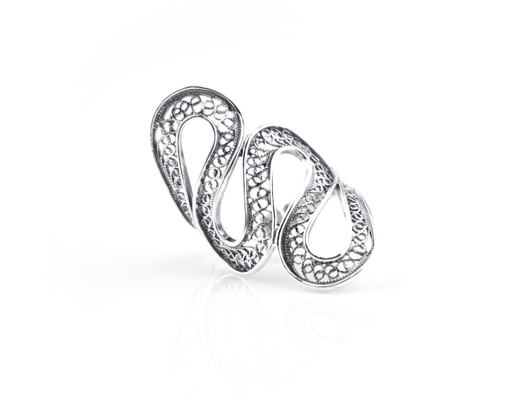 Elegant Curves Ring, in adjustable size. Portuguese Filigree, crafted in Portugal in 925 Sterling Silver.