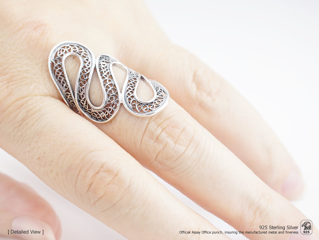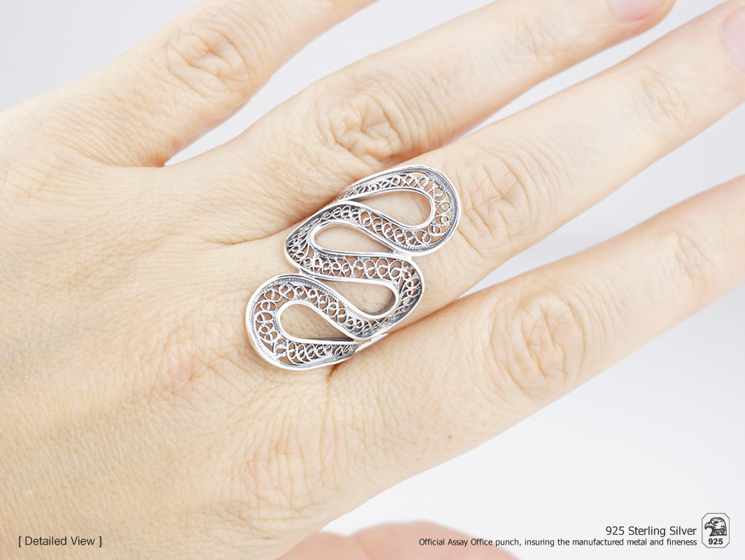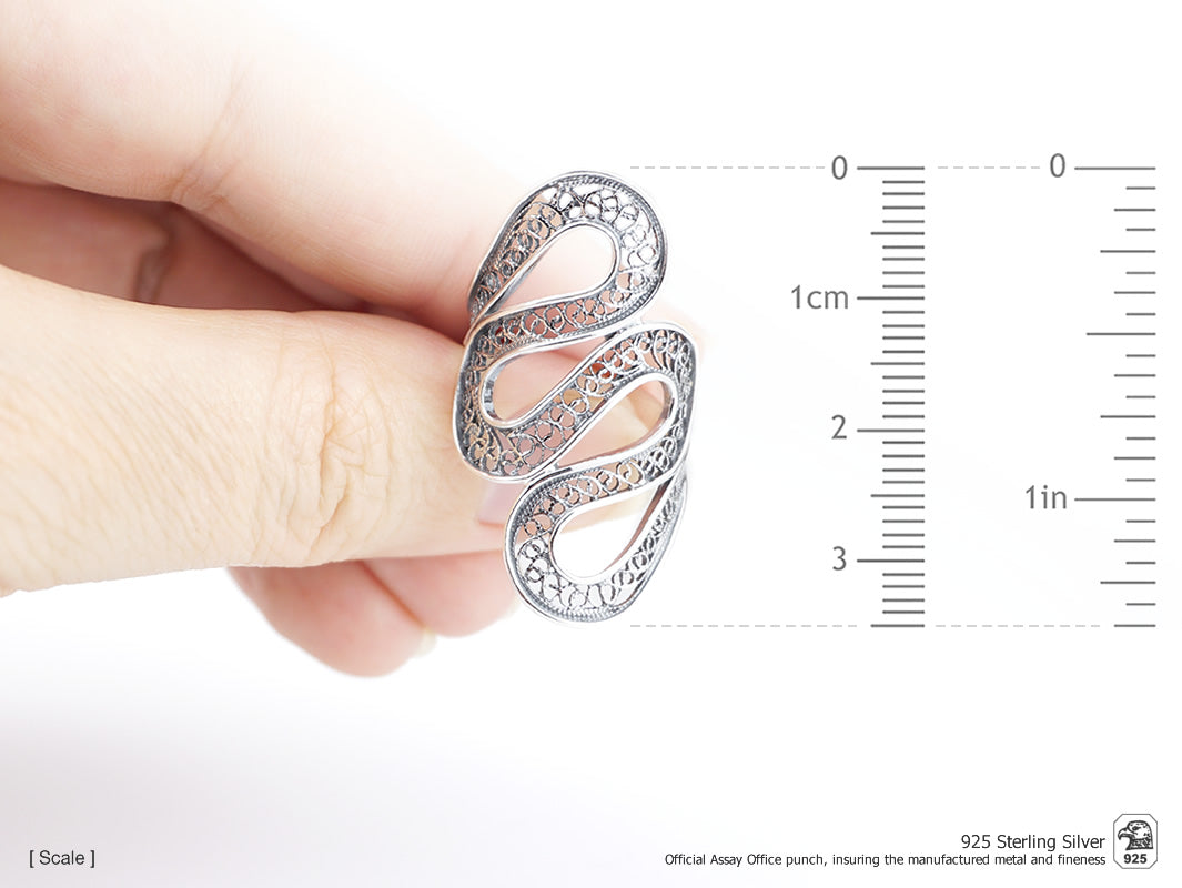 Curves Adjustable Ring, Portuguese Filigree, 925 Sterling Silver
