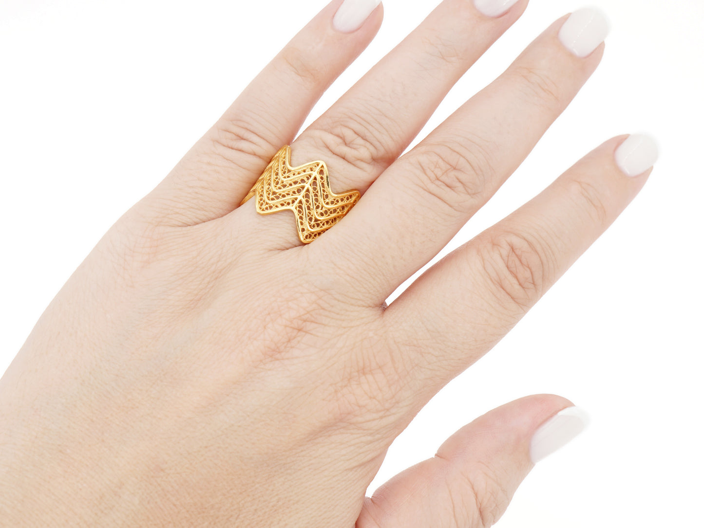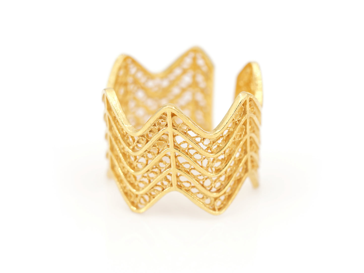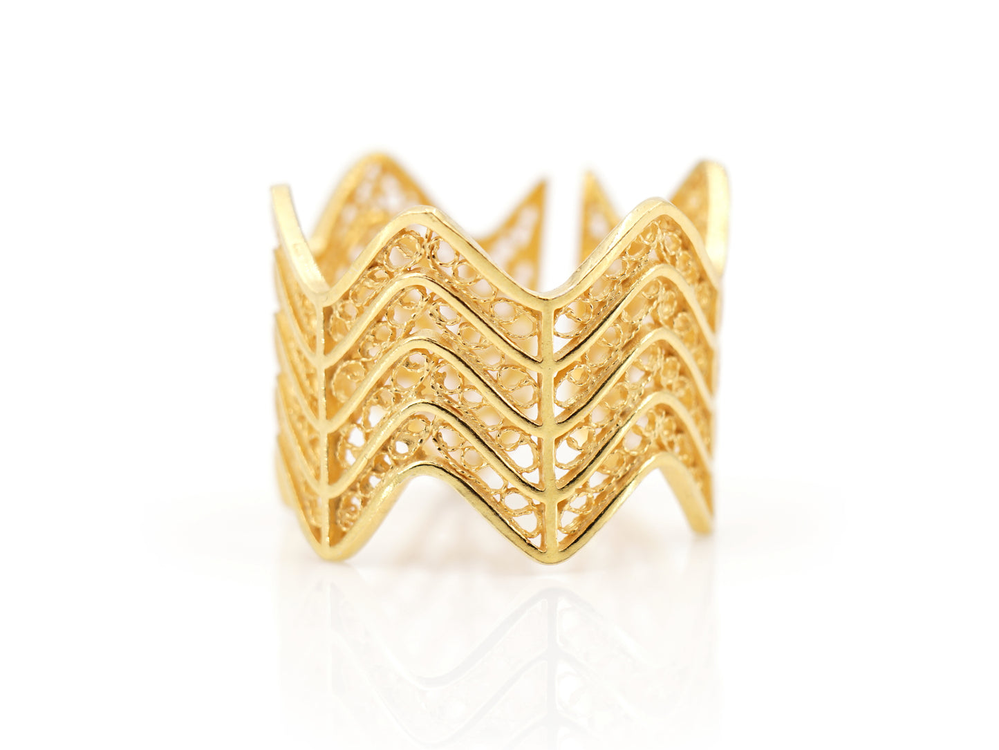 Zigzag Adjustable Ring, Portuguese Filigree, Golden 925 Sterling Silver