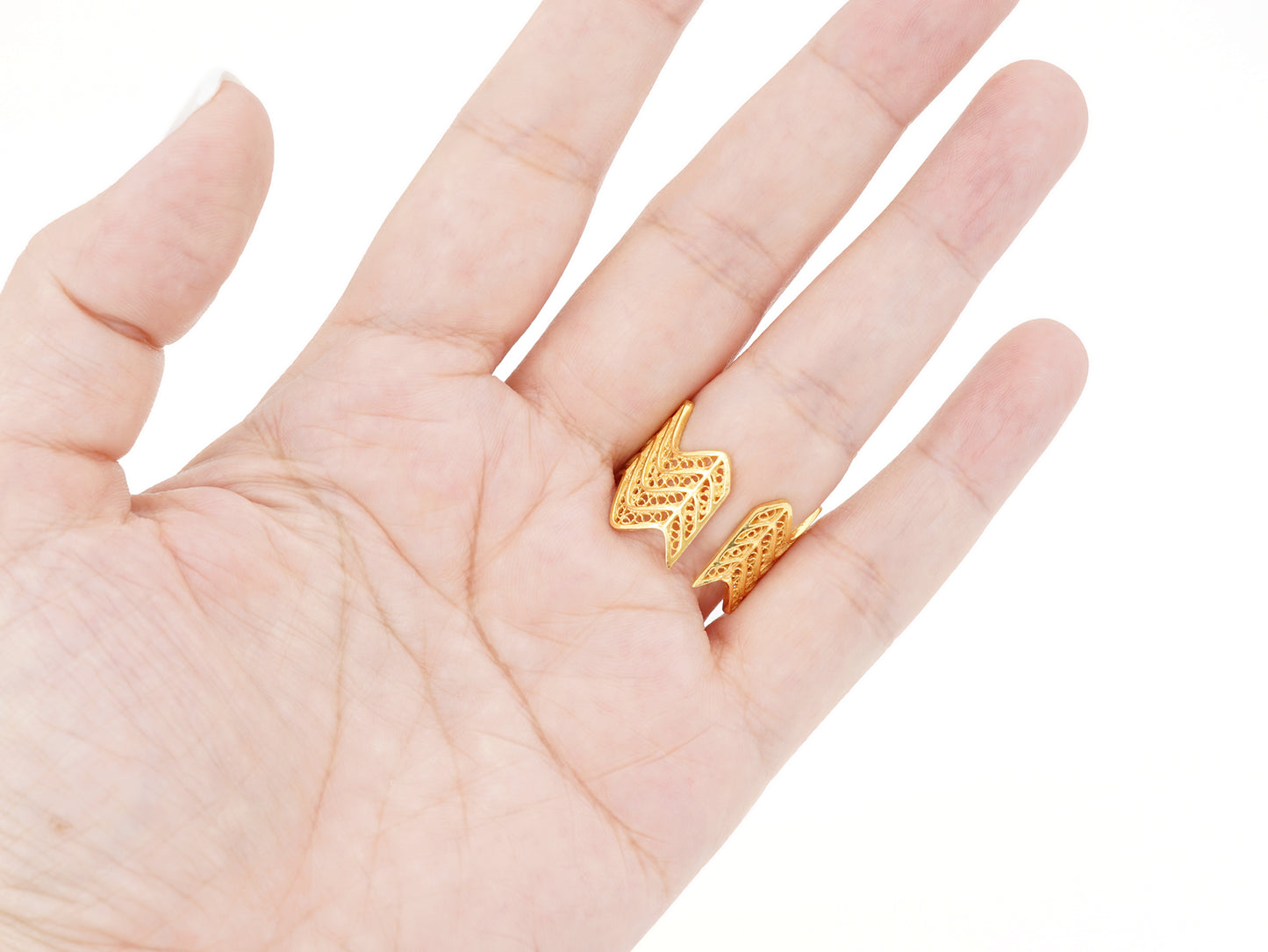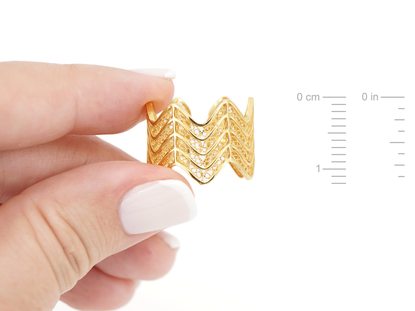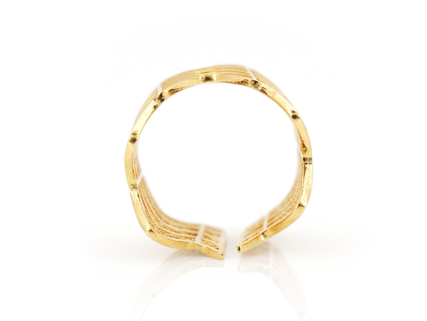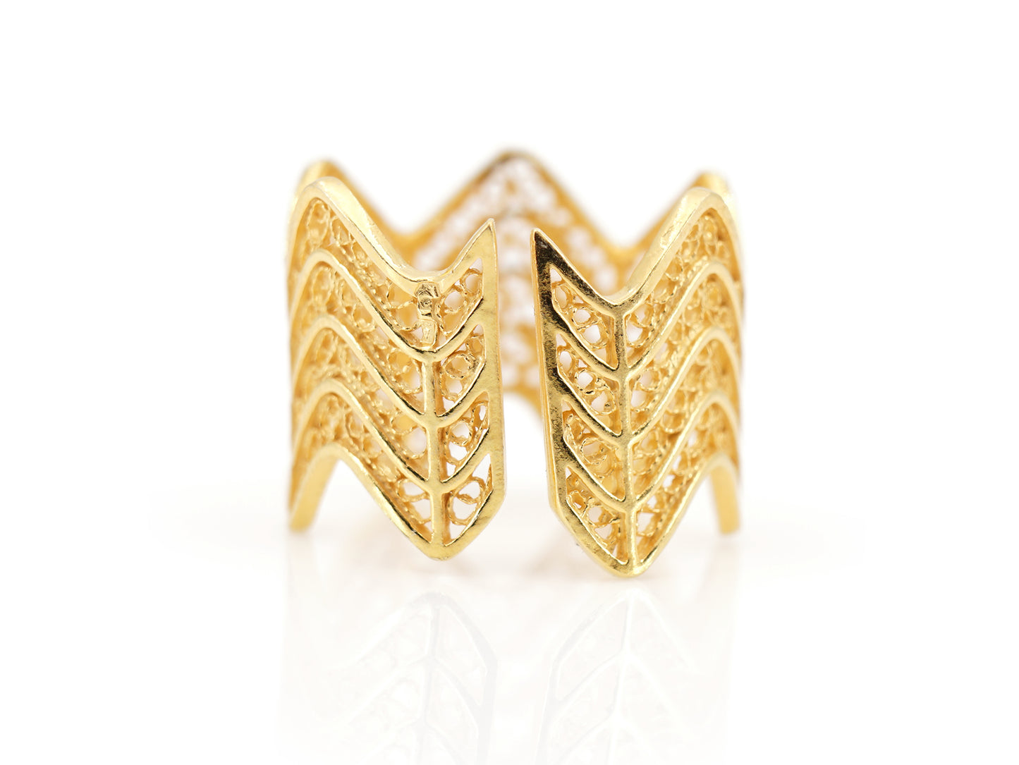 Zigzag Adjustable Ring, Portuguese Filigree, Golden 925 Sterling Silver