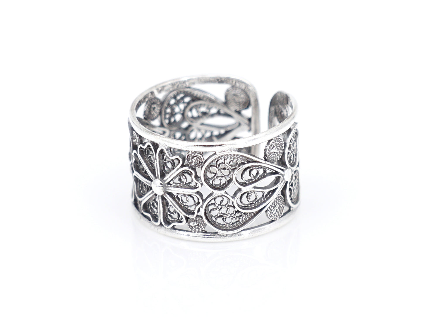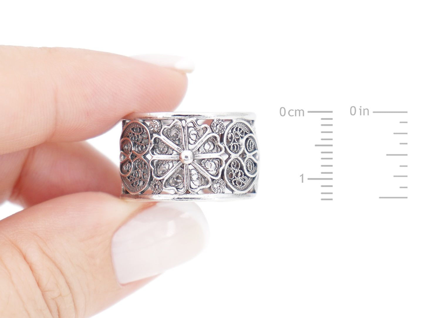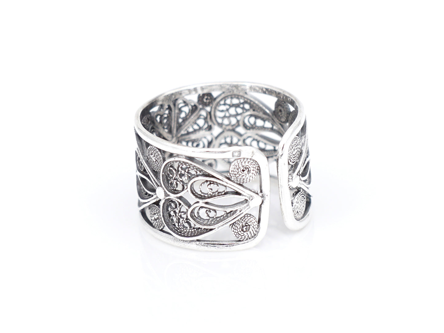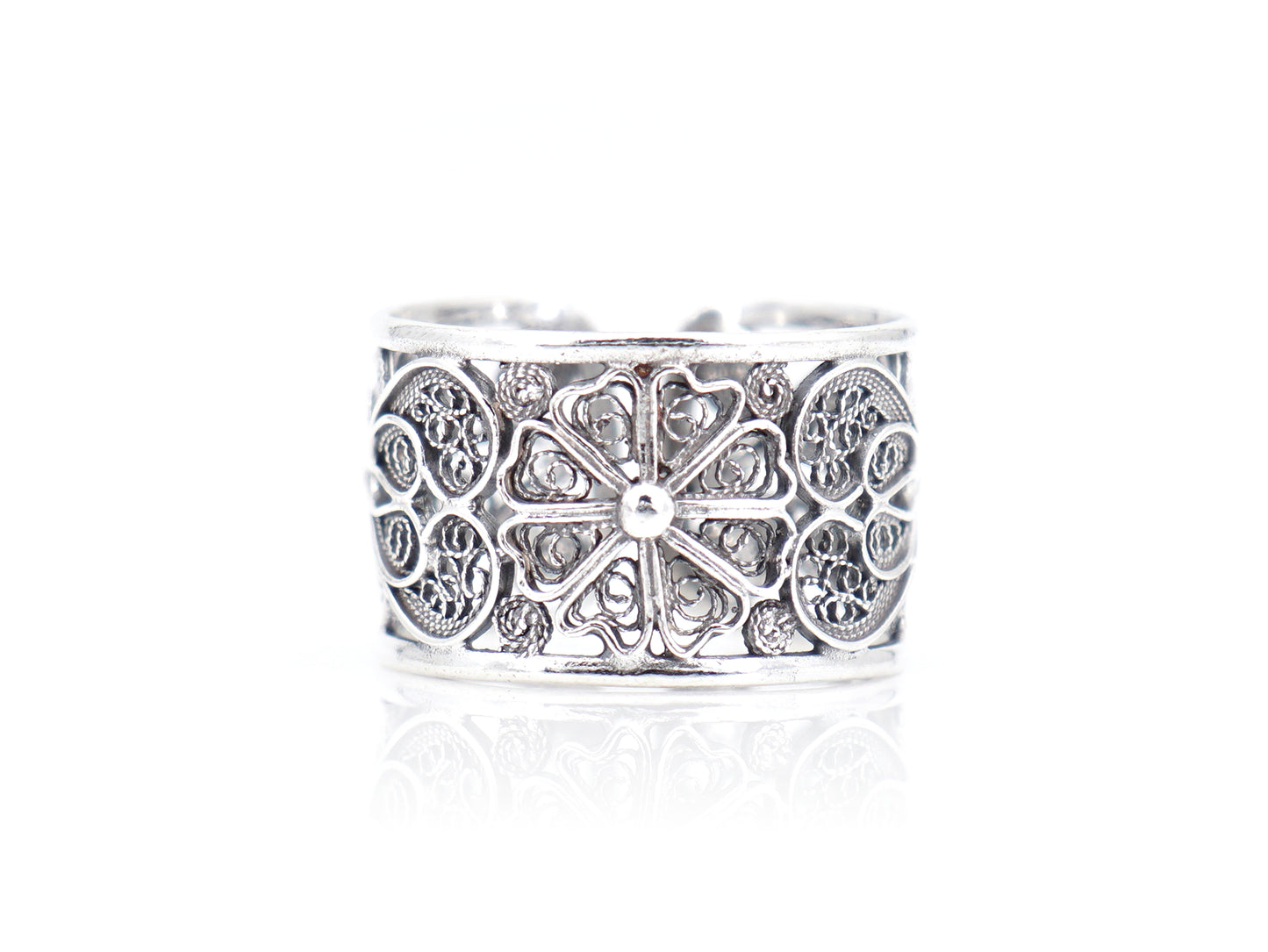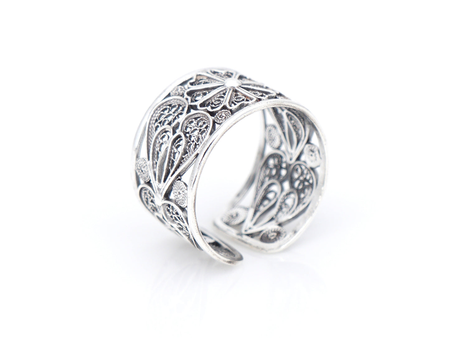 Elegant Wide Ring, in adjustable size. Portuguese Filigree, crafted in Portugal in 925 Sterling Silver.