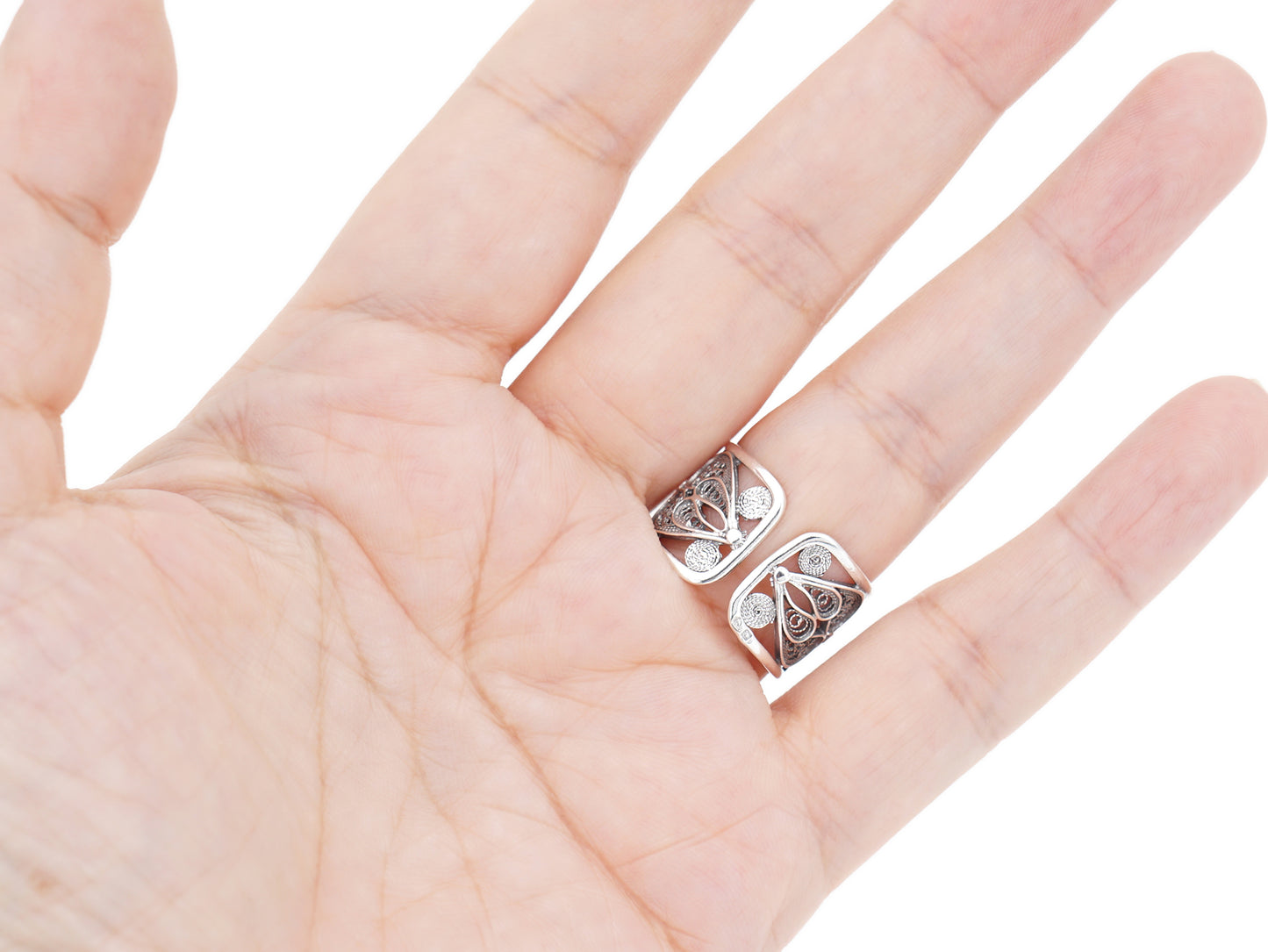 Wide Adjustable Ring, Portuguese Filigree, 925 Sterling Silver