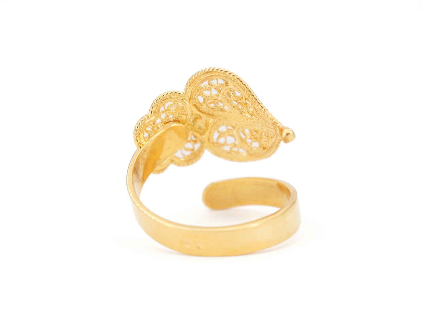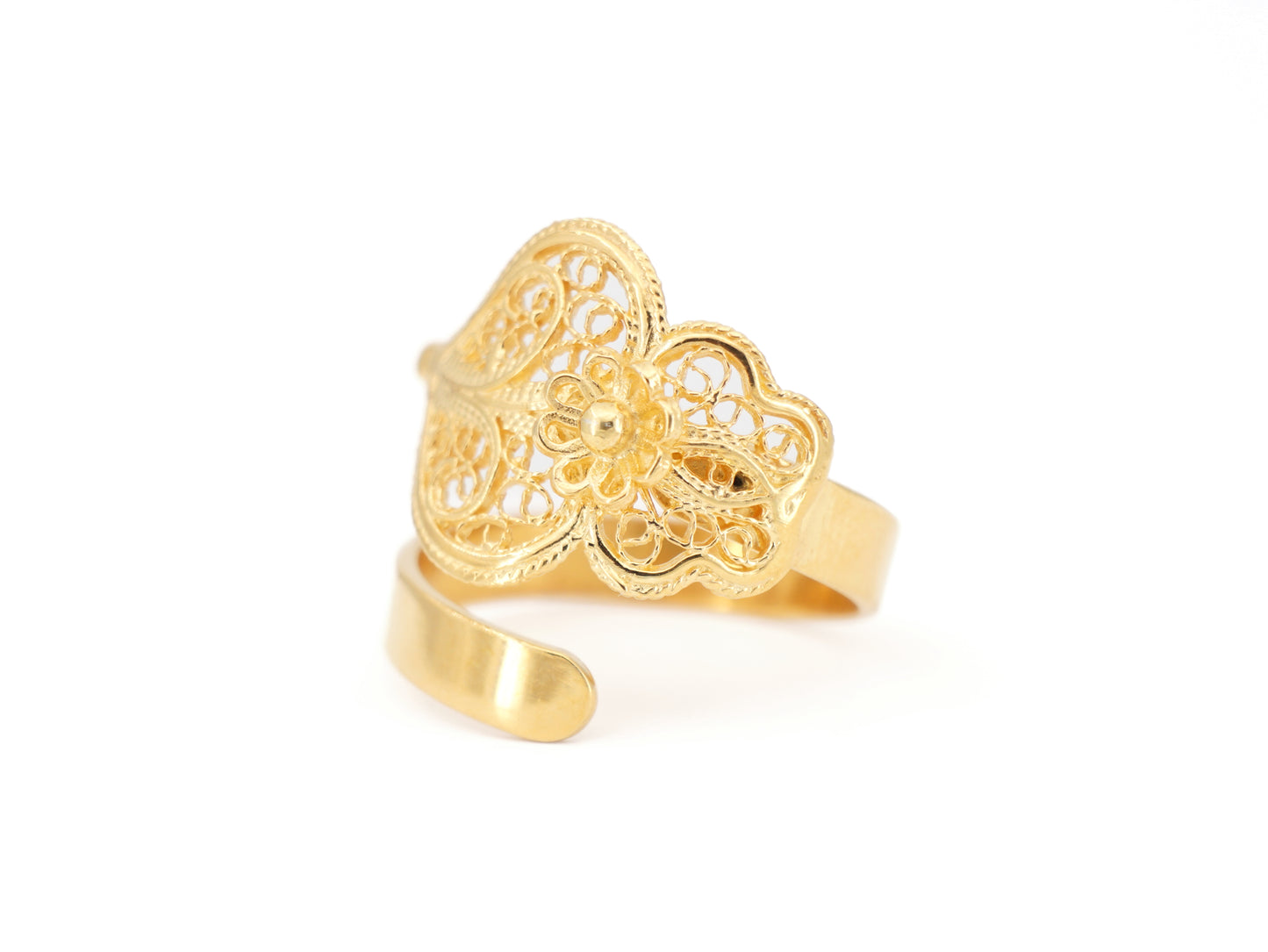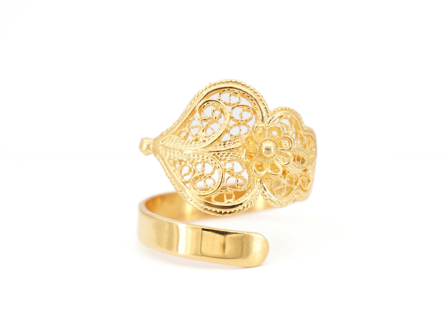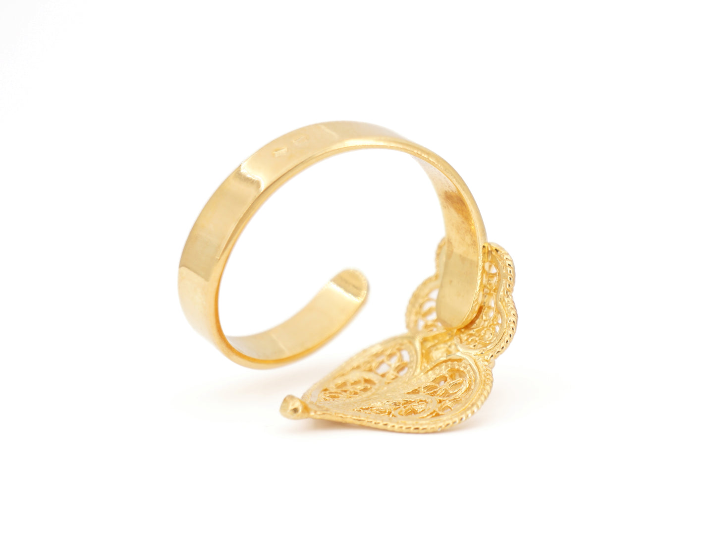 Elegant Small Viana Heart Ring, adjustable in size. Portuguese Filigree, crafted in Portugal in Golden 925 Sterling Silver.